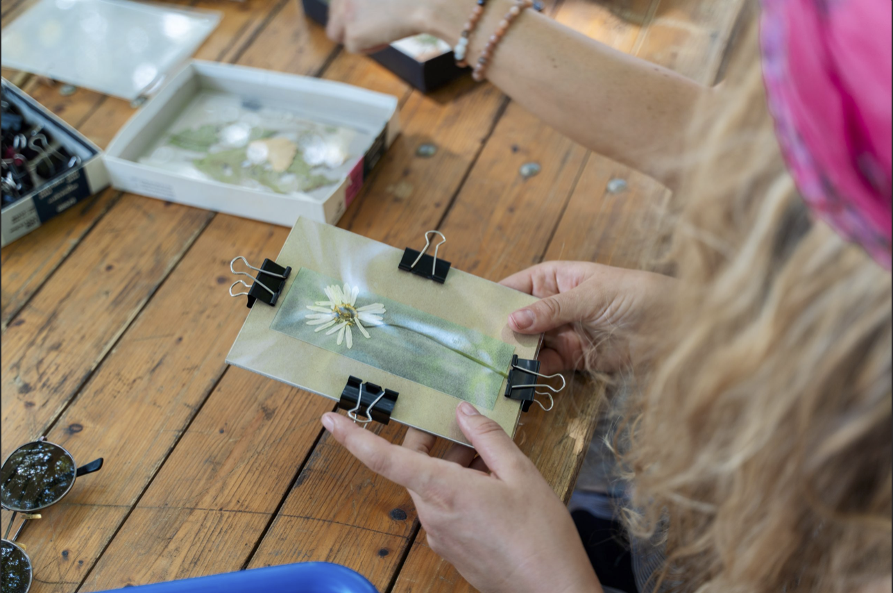 Je réalise des interventions en groupe pour initier petits et grands à ce procédé ancien et alternatif qui offre de belles images photographique au ton bleu prusse !